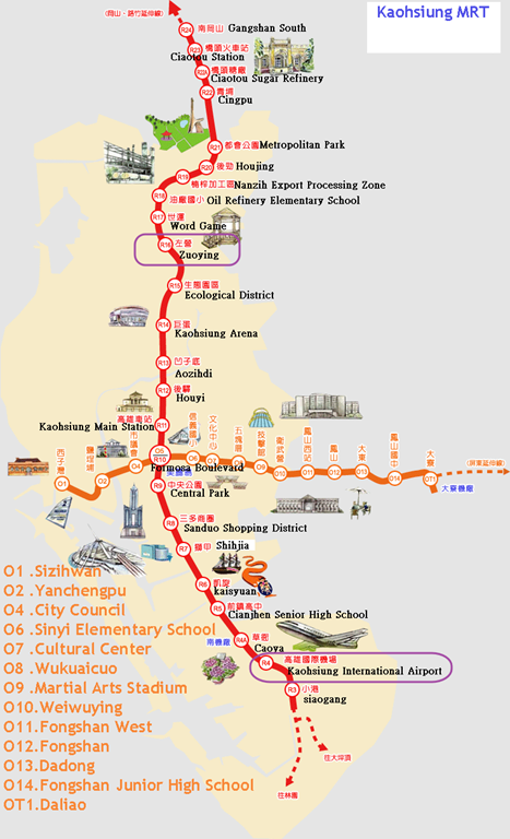 Please transfer to Kaohsiung Mass Rapid Transit (MRT) to Zuoying .